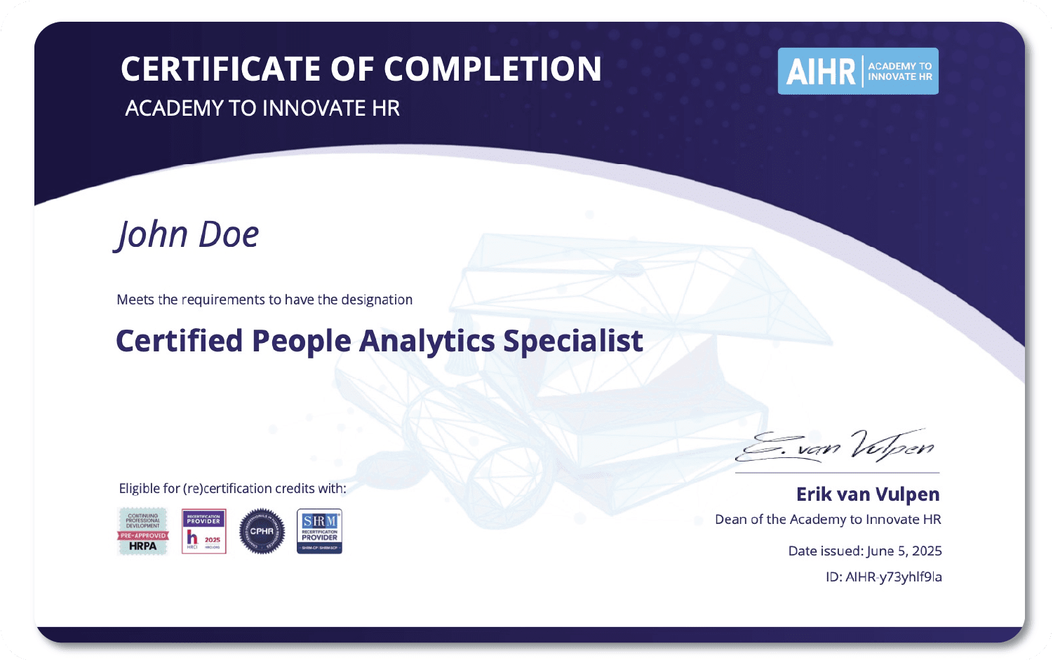 AIHR has partnerships with many of the world’s largest HR associations and accreditation institutes, such as the HRCI, SHRM, HRPA, and many other local HR organizations.